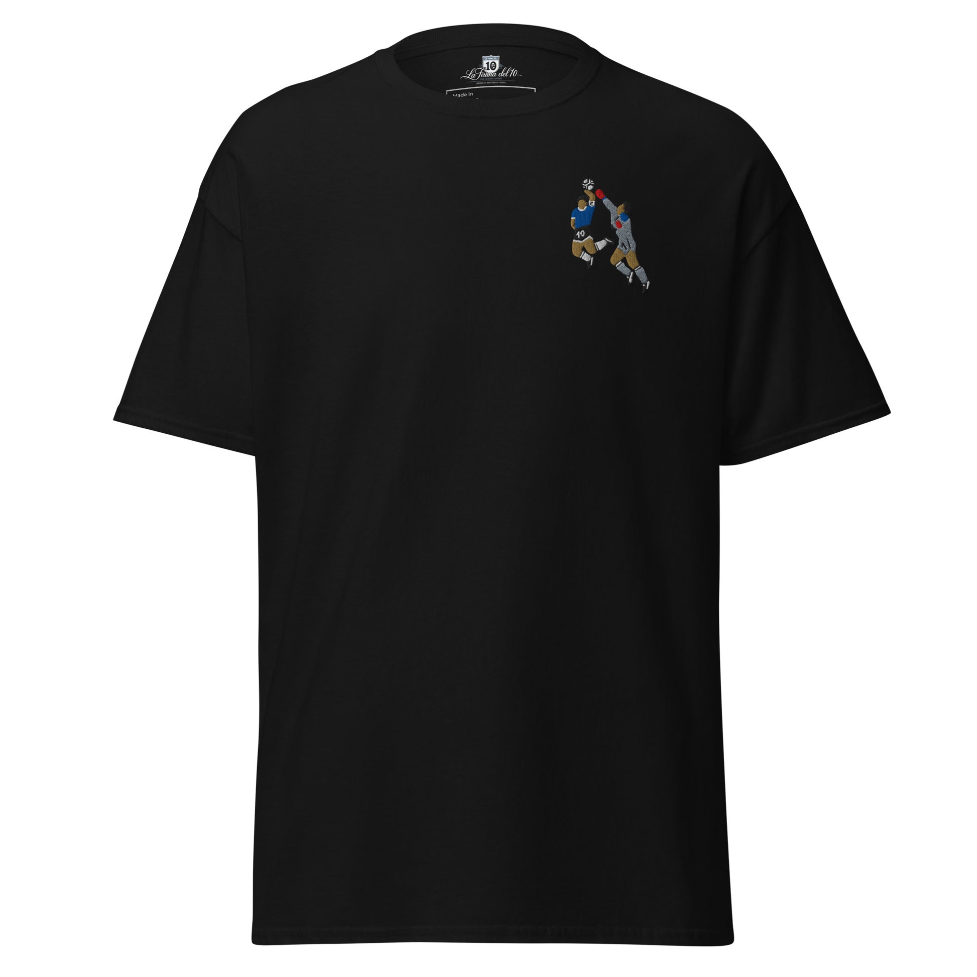 En México '86, el mundo entero se detuvo... y Maradona escribió historia con un toque celestial. No fue un gol cualquiera. Fue justicia poética, fue rebelión convertida en gloria.Con una jugada que desafió las reglas, Diego no solo venció a Inglaterra: venció al pasado, al dolor y al orgullo de un país herido. Esa mano no fue trampa... fue destino. Esta camiseta rinde homenaje al hombre que convirtió lo imposible en leyenda, el único capaz de decir que Dios jugó al fútbol… y lo hizo con la 10 de Argentina. Fue la mano de dios, y será siempre eterna.